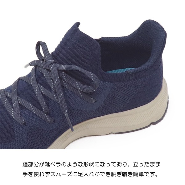アッパーに通気性と柔軟性の高いニット素材を使用し、柔らかく弾力のあるインソールを採用。