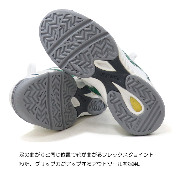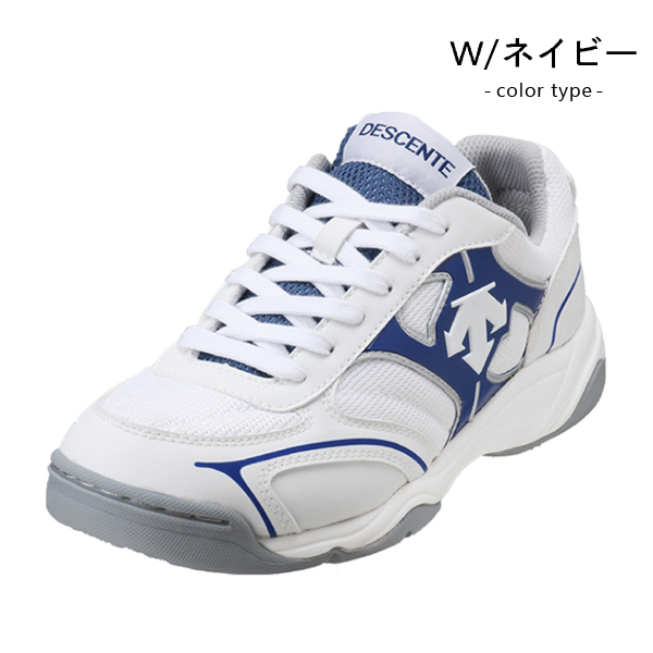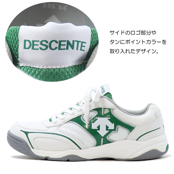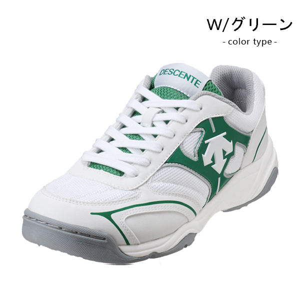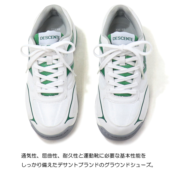 通気性のよいメッシュ素材を使用した、デサントブランドのグランドシューズ。