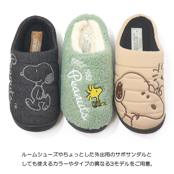 スヌーピー サボサンダル モックシューズ スリッパ ルームシューズ レディース 室内履き ボア PEANUTS