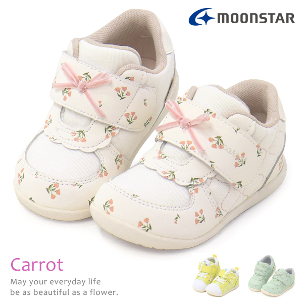 キャロット ベビーシューズ スニーカー 靴 ムーンスター キッズ ワガママ 女の子 リボン B97