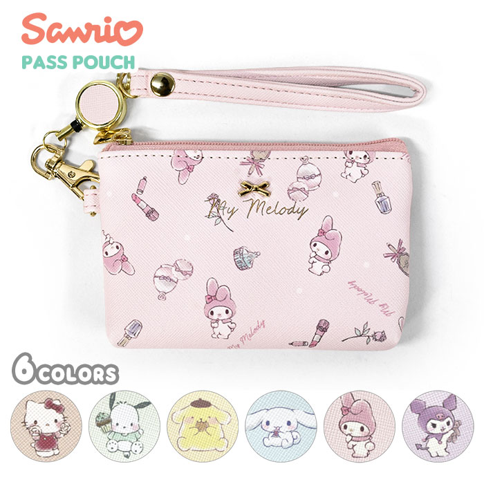 キティちゃん キティ ポチャッコ ポムポムプリン シナモロール マイメロディ クロミ グッズ パスケース 定期入れ 子供 こども キッズ 女の子 女子 リール付き