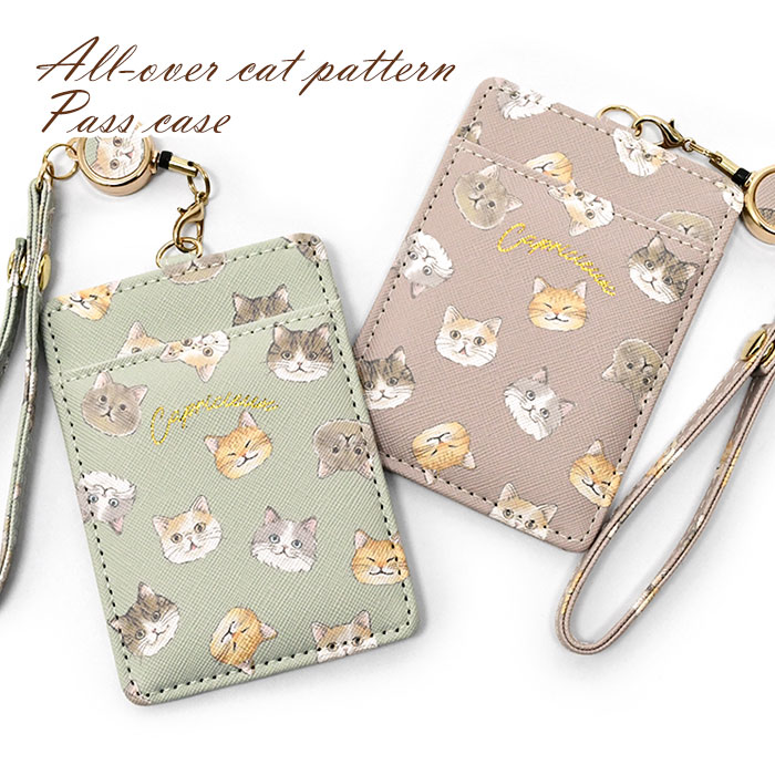 フェイクレザー 猫 総柄 リール付き パスケース /レディース 定期入れ ケース icカード ストラップ ストラップ付き 1枚 2枚 両面 リール リール付きパスケース 合成皮革 合皮 革 レザー シンプル 可愛い かわいい おしゃれ オシャレ 大人 中学生 高校生 大人っぽい 大人可愛い カジュアル 猫グッズ 猫 ねこ ネコ 猫柄 グッズ ギフト プレゼント 小物 雑貨 ミントグリーン モカブラウン/