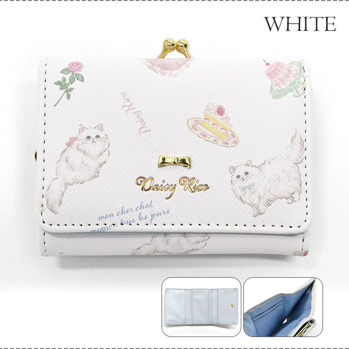 Daisy Rico 猫 総柄 がま口 三つ折り ミニ財布 猫グッズ 猫 ねこ ネコ 猫柄 ペルシャ猫 ミニウォレット 三つ折り財布 レディース 小さめ 大人 おしゃれ ガーリー