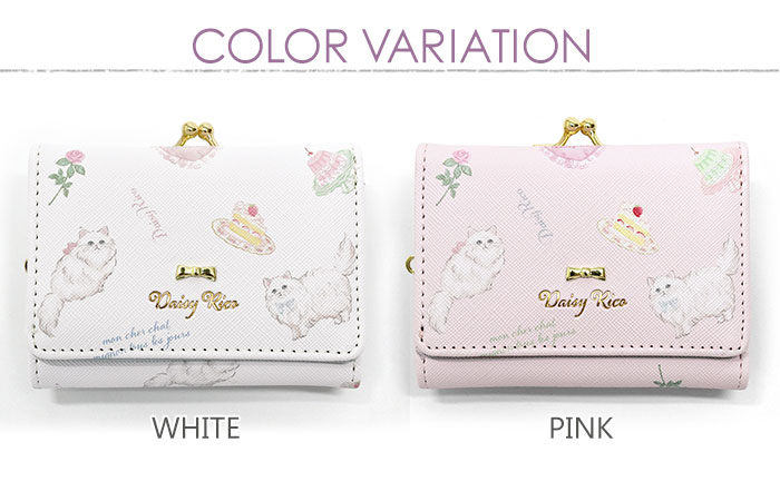 Daisy Rico 猫 総柄 がま口 三つ折り ミニ財布 /ミニウォレット 三つ折り財布 3つ折り財布 折財布 財布 ミニ レディース 女性 女子 小さい 小さめ 結婚式 通勤 大人 大人可愛い 大人っぽい 小学生 中学生 高校生 かわいい 可愛い おしゃれ オシャレ カジュアル コンパクト フェイクレザー 合成皮革 合皮 レザー ガーリー 小物 雑貨 グッズ プレゼント 猫グッズ 猫 ねこ ネコ 猫柄 ペルシャ猫 バラ 薔薇 花柄 スイーツ柄 ホワイト 白 ピンク/