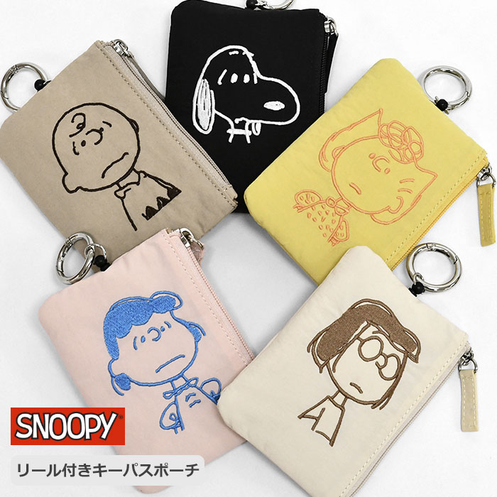 スヌーピー 刺繍 リール付き キーパスポーチ /レディース 女性 女子 メンズ 男性 男子 定期入れ パスケース パスポーチ icカードケース カード入れ カードケース リール リール付きパスケース カラビナ付き 小銭 小銭入れ 小銭入れ付き コインケース 小物入れ ポーチ ミニポーチ キーパスケース キーリング キーケース キーホルダー キーポーチ 鍵 一体 シンプル 可愛い かわいい おしゃれ オシャレ 通勤 通学 大人 向け 小学生 中学生 高校生 カジュアル ナイロン ギフト プレゼント 小物 雑貨 グッズ ピーナッツ PEANUTS SNOOPY スヌーピーグッズ ピーナッツフレンズ キャラクター チャーリーブラウン ルーシー サリー マーシー ブラック 黒 ベージュ ピンク イエロー オフホワイト/