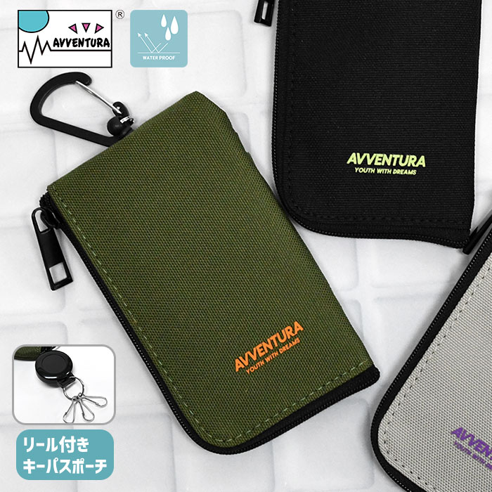 AVVENTURA アヴェンチュラ ロゴプリント リール付き キー&パスポーチ /レディース 女性 女子 メンズ 男性 男子 定期入れ パスケース キーパスケース キーパスポーチ パスポーチ icカードケース カード入れ カードケース リール リール付きパスケース カラビナ付き カラビナ 伸びる 小物入れ ポーチ ミニポーチ キーフック キーケース キーホルダー キーポーチ 鍵 一体 3連 スマートキー 車 シンプル 可愛い かわいい おしゃれ オシャレ かっこいい 通勤 通学 大人 小学生 中学生 高校生 カジュアル ギフト プレゼント 撥水 ポリエステル ライトグレー カーキ ブラック 黒/