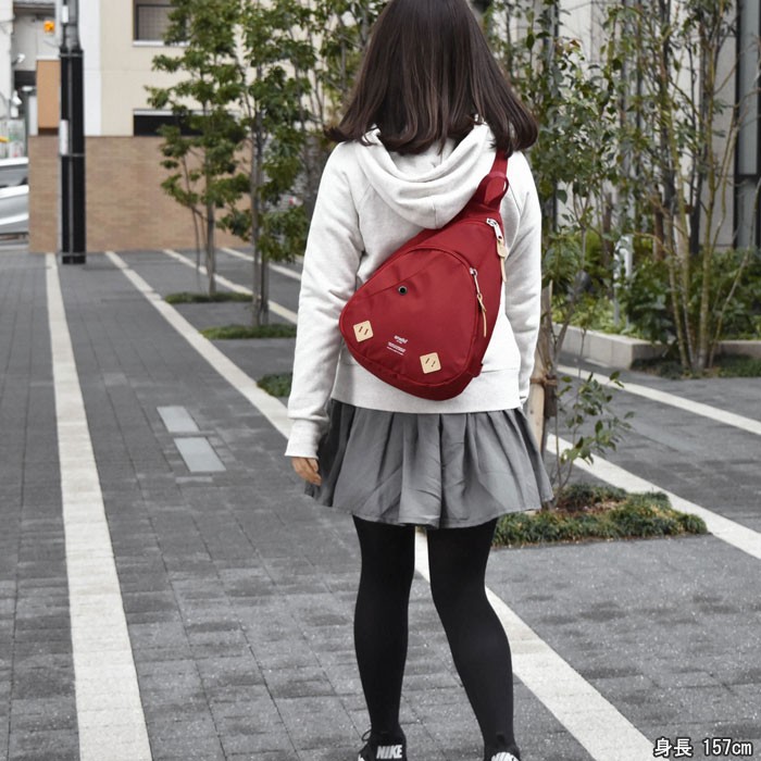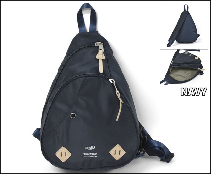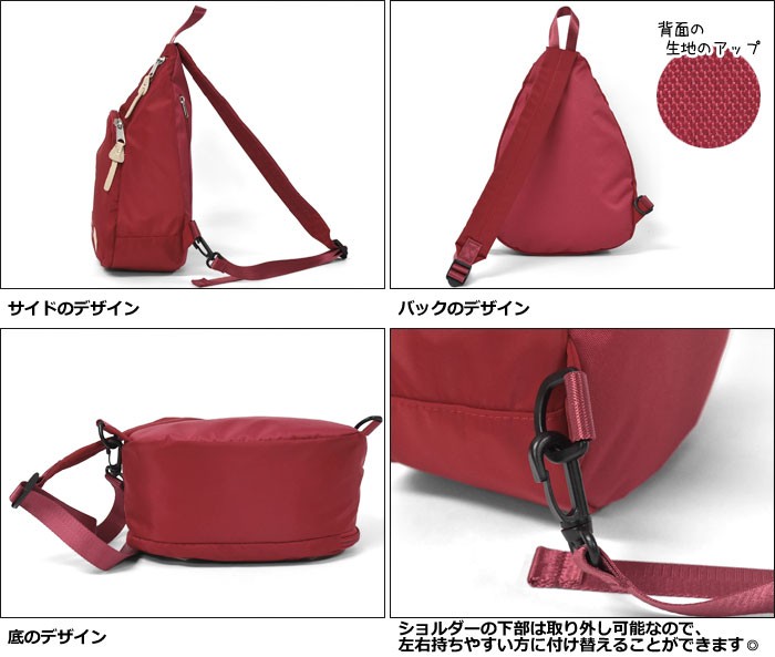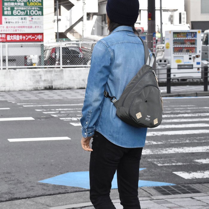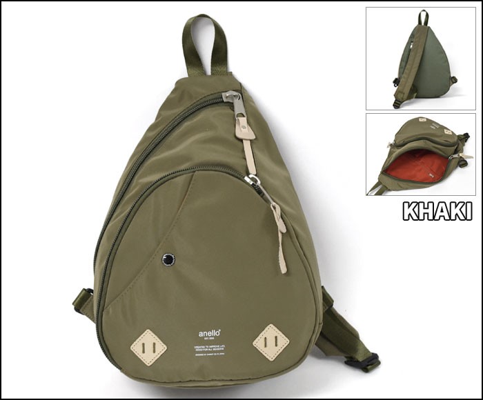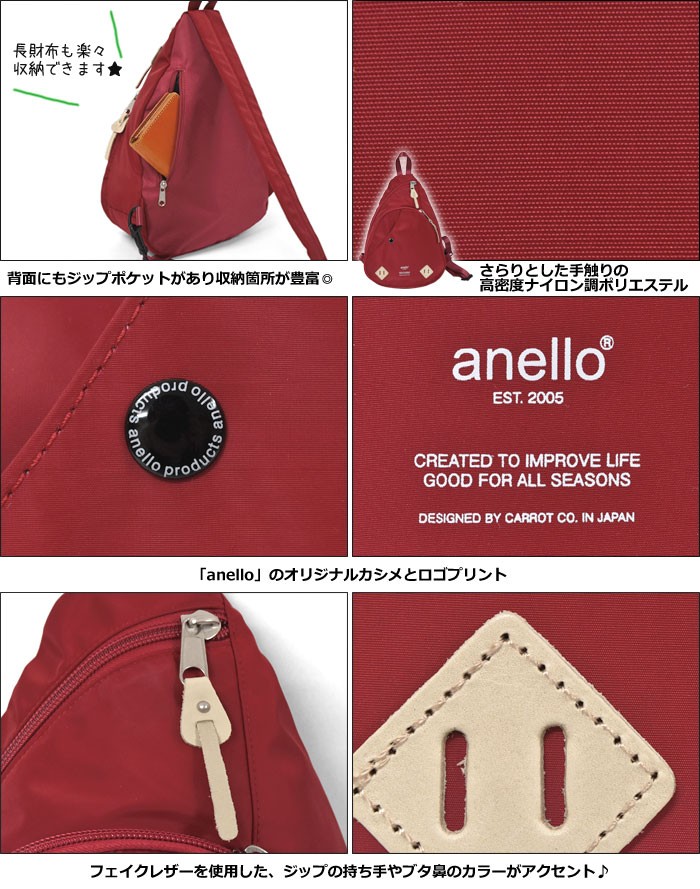 ■ anelloの、高密度ナイロン風生地を使用したボディバッグです。