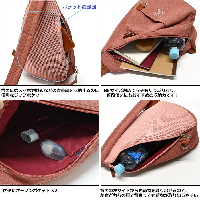■ メイン収納部の開け口は左右にあるので、どちらの肩に掛けても取り出しやすくなっています◎