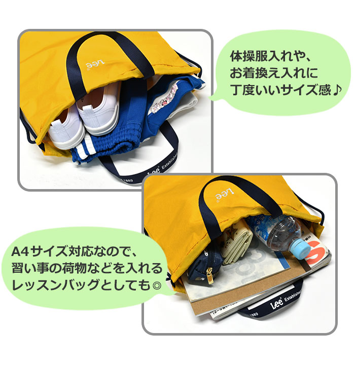 ナップサック 女の子 男の子 Lee リー 撥水 Mサイズ 大きめ ナップザック 可愛い かわいい おしゃれ 女の子 男の子 ブランド 小学生 小学校 巾着バッグ 軽い