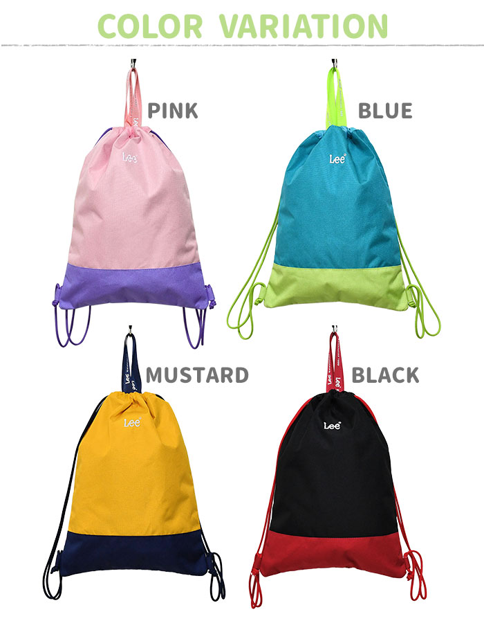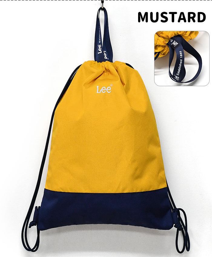 Lee リー 撥水 ナップサック Mサイズ /子供 子供用 子ども こども ジュニア 女の子 女子 男の子 男子 小学生 小学校 保育園 幼稚園 子供バック 子供バッグ ナップザック 巾着バッグ 持ち手 体操着 体操着入れ 体操着袋 体操服入れ 体操服袋 お着替え袋 バッグ 鞄 かばん カバン こどもリュック 通園バッグ キッズリュックサック 子供リュックサック レディース ミニ リュックサック ミニリュックサック 可愛い かわいい おしゃれ 軽い 軽量 無地 シンプル 大きめ ポリエステル ポリキャンバス ナイロン ブランド ロゴ 刺繍 バイカラー ピンク ブルー マスタード イエロー ブラック 黒/