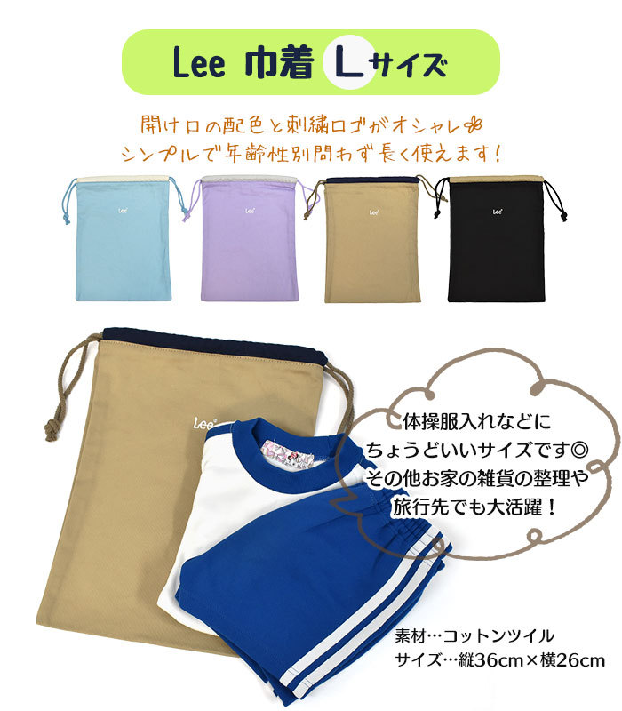 巾着 巾着袋 巾着ポーチ 大 体操着入れ 体操着袋 体操服入れ 体操服袋 大きいサイズ 大きめ 大型 子供 子供用 お着替え袋 小学校/Lee リー ブランド