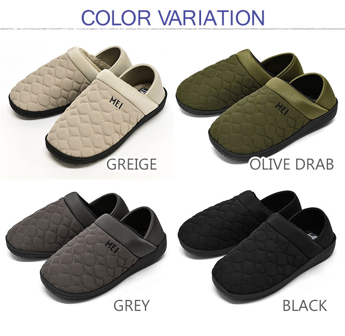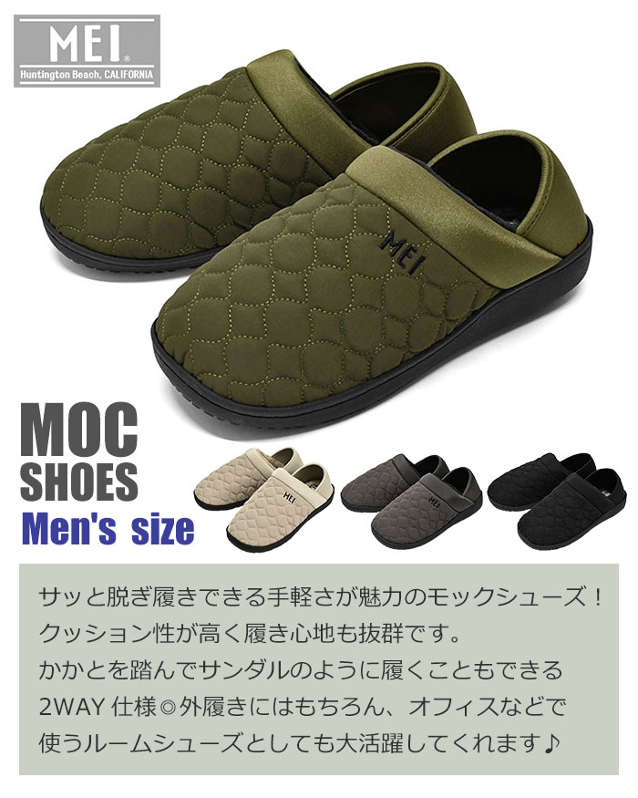 MEI メイ キルティング モックシューズ メンズ スリッポン シューズ 靴 スリッパ 冬サンダル 冬用サンダル 冬用 キャンプ 2way おしゃれ ブランド 軽量 軽い