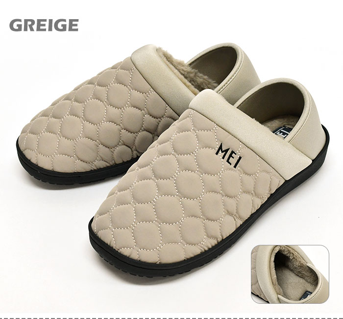 MEI メイ キルティング モックシューズ メンズ /モック シューズ 靴 スリッパ サンダル 秋 冬 秋冬 用 暖かい あったかい 中綿 冬用サンダル 冬用 スリッポン キャンプシューズ アウトドア レジャー キャンプ ルームシューズ バブーシュ 軽量 軽い 外履き 室外 室内 オフィス コンビニ 防寒 26.5cm 27cm 27.5cm 28cm シンプル おしゃれ かっこいい 大人 ブランド エムイーアイ グレージュ グレーベージュ グレー ブラック 黒/