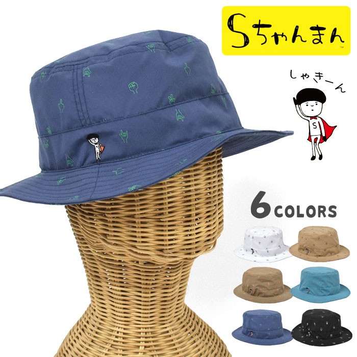 ハット 帽子 レディース おしゃれ ポリエステル Sちゃんまん ハンドサイン柄 アドベンチャーハット