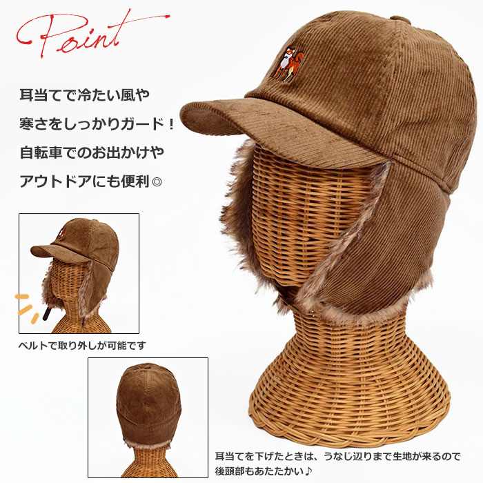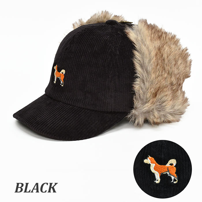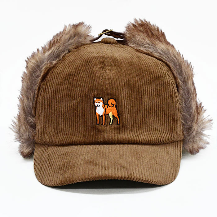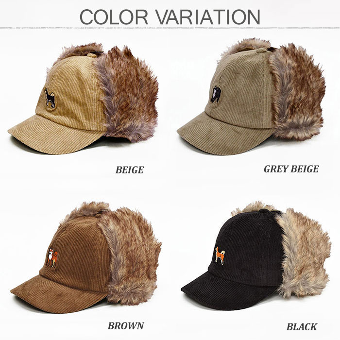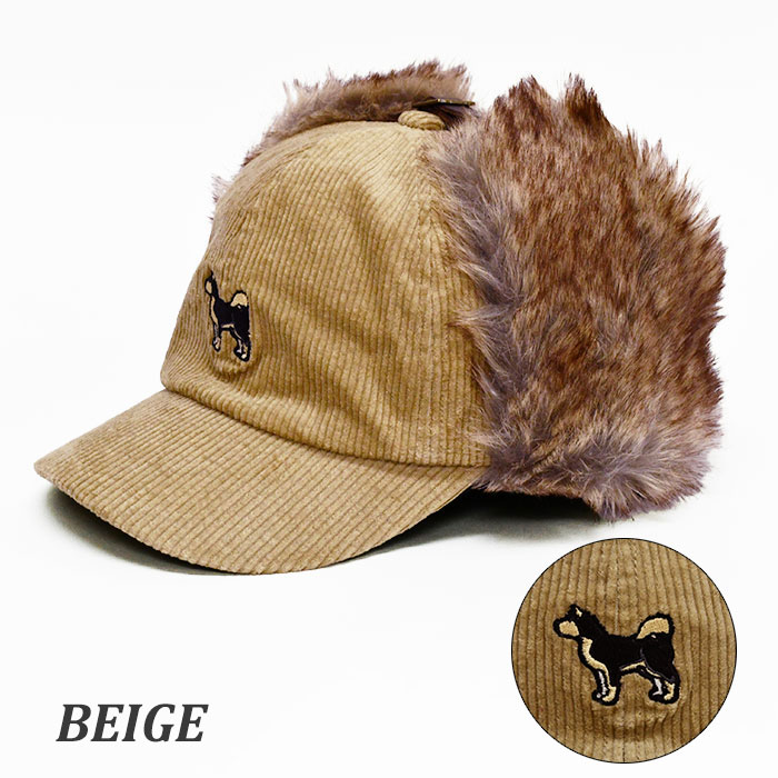 コーデュロイ 柴犬 サイドアップ キャップ 柴犬グッズ 犬 メンズ パイロットキャップ フライトキャップ 帽子 2way 耳あて付き おしゃれ ファー 防寒 秋冬