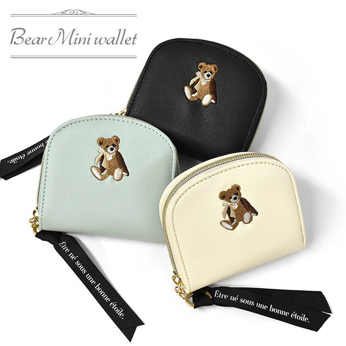 レディース 二つ折り ミニ財布 折財布 ミニウォレット ミニ 財布 コインケース 小銭入れ 小さい 小さめ パスケース 定期入れ 通勤 大人 大人可愛い 女性 女子 女の子 かわいい 可愛い おしゃれ オシャレ カジュアル コンパクト 小物 無地 シンプル 合成皮革 合皮 レザー 革 PU グッズ テディベア ハート リボン アイボリー グリーン ブラック 黒 10代 小学生 中学生 高校生 大学生 プレゼント ギフト 誕生日プレゼント クリスマスプレゼント