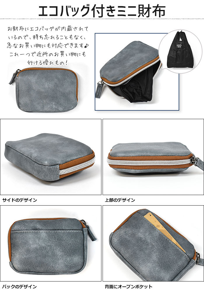 ミニ財布 財布 メンズ 小さめ おしゃれ/フェイクレザー エコバッグ付き
