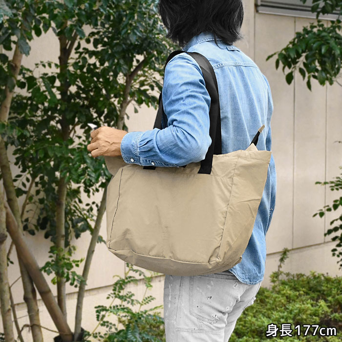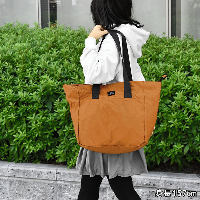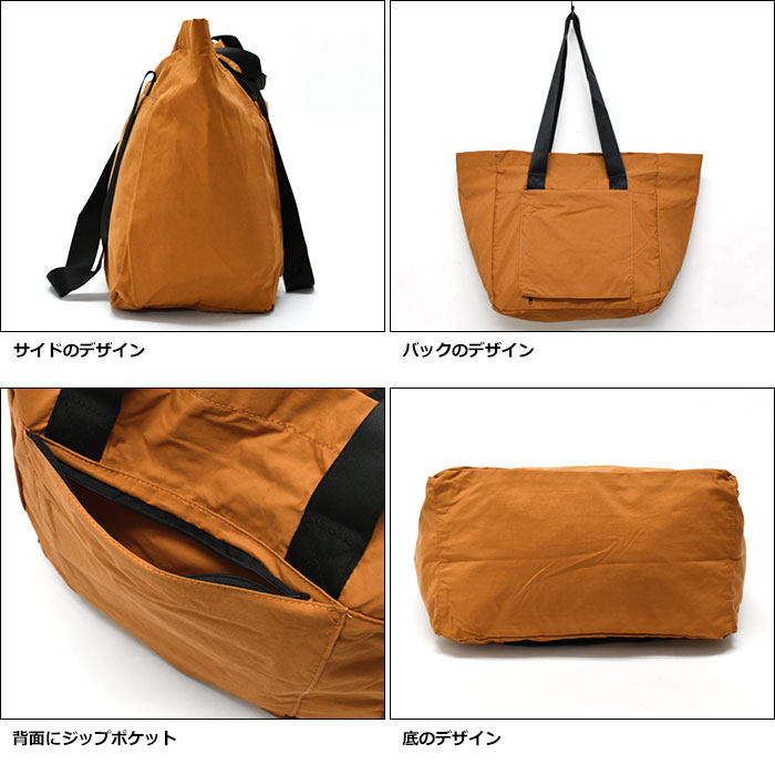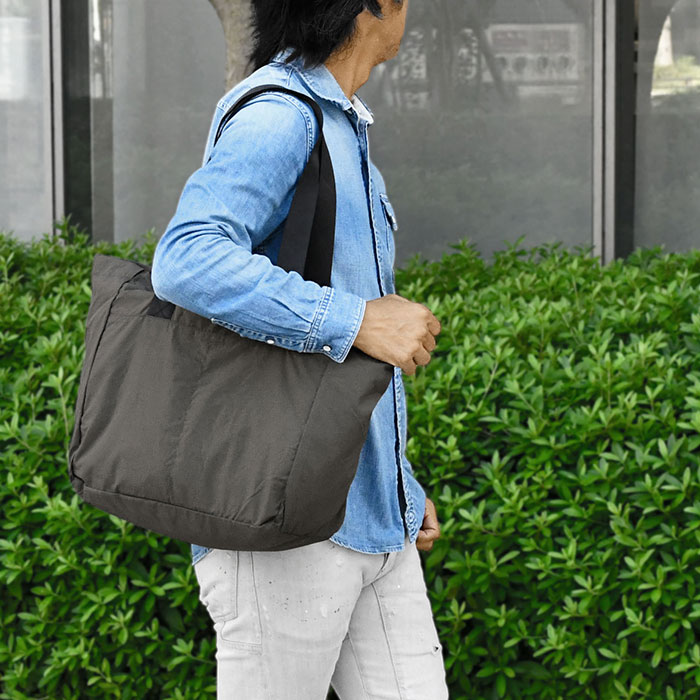 ■ マット調のナイロン生地を使用したポケッタブルトートです。