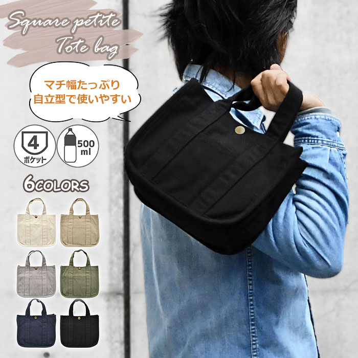 キャンバス スクエア プチトートバッグ /レディース 女性 女子 メンズ 男性 男子 小さめ 小さい トートバッグ ミニ ミニトートバッグ トート バッグ 手提げバッグ ハンドバッグ サブバッグ ポケット付き 仕切り 仕切りあり 仕切り付き ペットボトル ボトルホルダー ランチバッグ ランチバック ランチトート ランチトートバッグ 弁当 厚手 丈夫 通勤 通学 無地 シンプル カジュアル 軽量 軽い かわいい 可愛い おしゃれ オシャレ 大人 大人可愛い 大人女子 自立 自立する e.e.p. コットンキャンバス 帆布 生成り アイボリー ベージュ グレー カーキ ネイビー ブラック 黒/