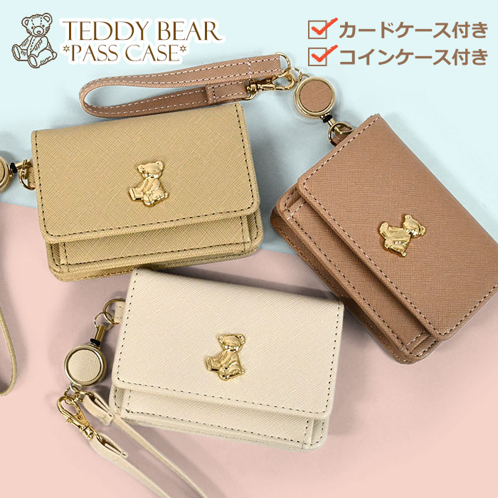 パスケース 定期入れ リール 子供 子供用 こども キッズ 女の子 女子 小学生 中学生 高校生 大学生 おしゃれ 小銭入れ ポーチ くま テディベア リール付き