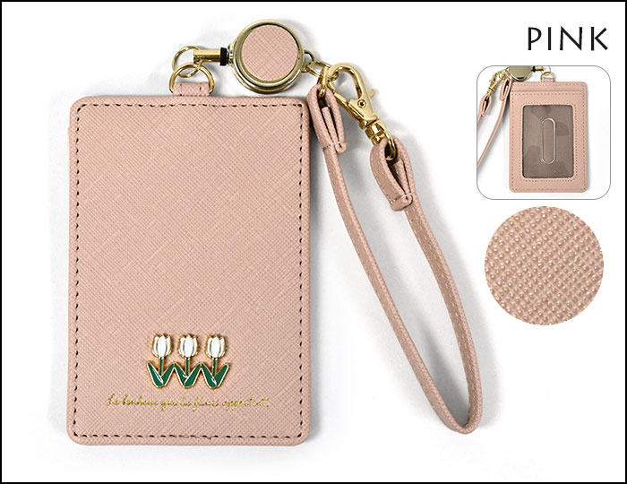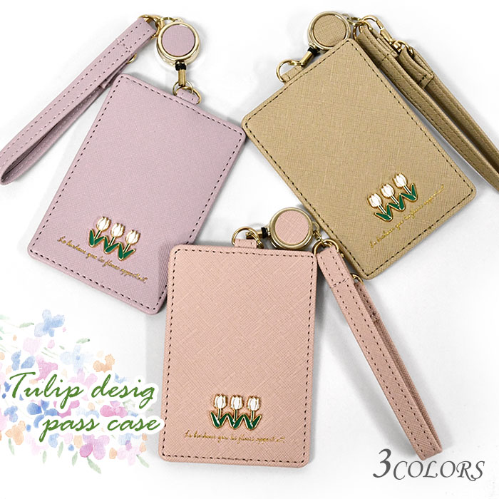 チューリップ 花 グッズ パスケース 定期入れ 子供 子供用 こども キッズ 女の子 女子 小学生 中学生 おしゃれ/ リール付き 可愛い かわいい 大人っぽい