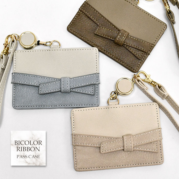 ■ シボ感の異なるバイカラーの合皮生地と、リボンのデザインが大人可愛いパスケースです。