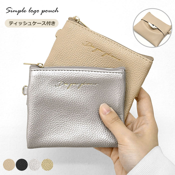 フェイクレザー シンプル ロゴ ポーチ /ポケットティッシュケース付きポーチ ティッシュケース ポケットティッシュケース ポケットティッシュカバー ポケットティッシュポーチ ポケットティッシュ ティッシュ ティッシュポーチ フラットポーチ 薄い マチなし 軽い 軽量 リップポーチ ミニポーチ ミニ コスメポーチ メイクポーチ 化粧ポーチ 小物入れ 小さめ 小さい かわいい 可愛い おしゃれ オシャレ 大人 大人っぽい きれいめ 上品 レディース 持ち運び Dカン レザー 合成皮革 合皮 ベージュ ブラック 黒 シルバー ゴールド/