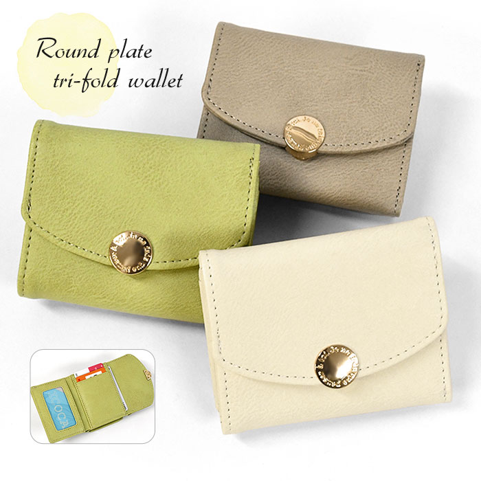 フェイクレザー サークルプレート 三つ折り ミニ財布 /ミニウォレット 三つ折り財布 3つ折り財布 折財布 財布 さいふ サイフ ミニ レディース 女性 女子 ラウンドファスナー ラウンドジップ 小さい 小さめ 手のひらサイズ 結婚式 通勤 大人 大人っぽい かわいい 可愛い おしゃれ オシャレ 無地 シンプル カジュアル コンパクト 合成皮革 合皮 レザー PU プレゼント アイボリー グリーン グレー/ 10代 小学生 中学生 高校生 大学生 プレゼント ギフト 誕生日プレゼント クリスマスプレゼント