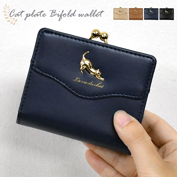 ■ 伸びをする猫のゴールドプレートが可愛い、"伸び猫"シリーズの二つ折り財布です。
