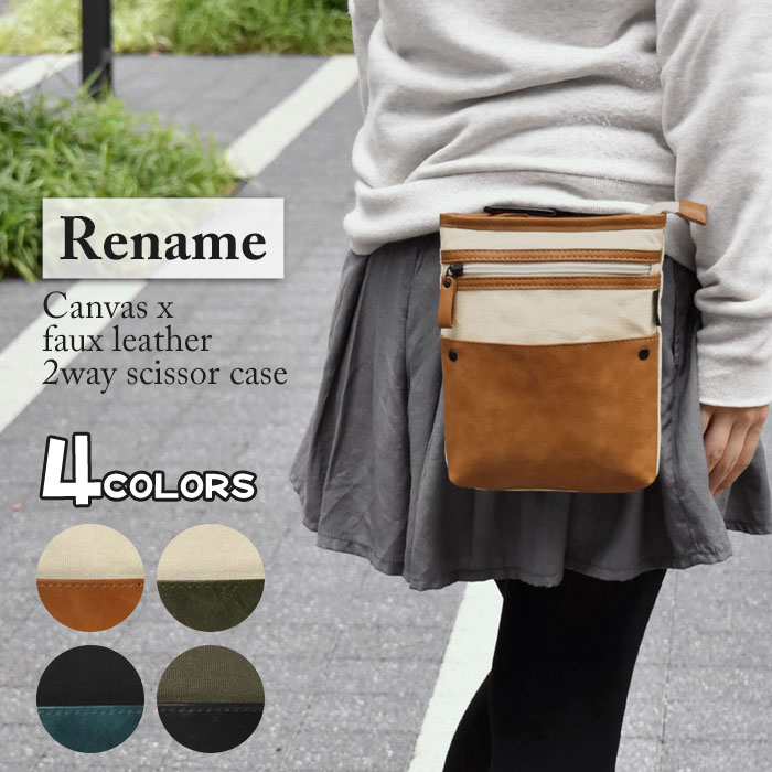 ベルトポーチ ミニ スマホポーチ ベルト スマホ シザーバッグ シザーケース レディース おしゃれ Rename village キャンバス フェイクレザー ショルダーバッグ