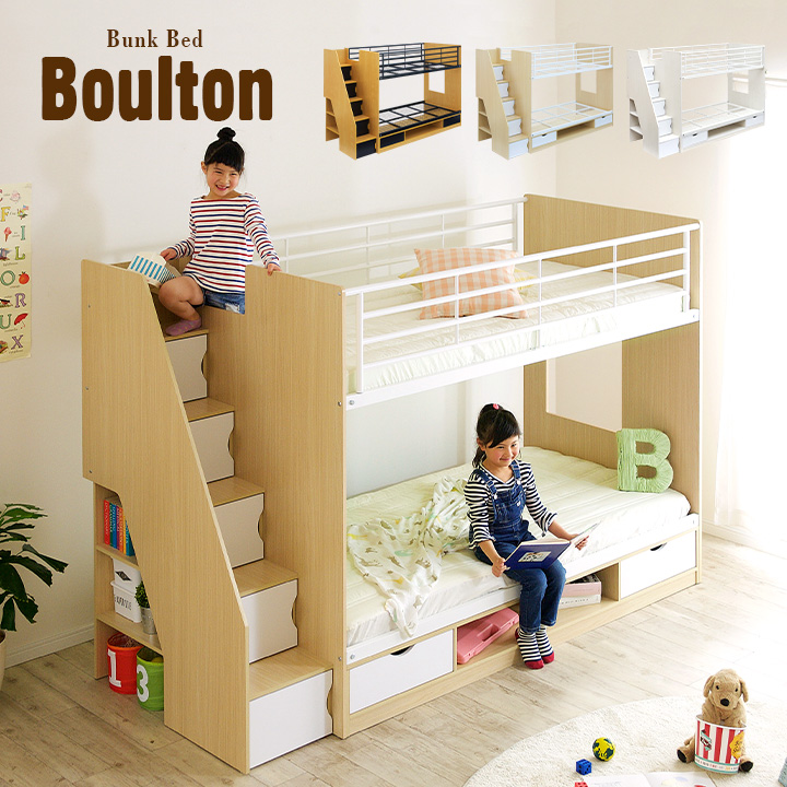 二段ベッド 大人用 子供 2段ベッド 階段付き 階段付 階段 子供用ベッド おしゃれ 収納 Boulton(ボルトン) 3色対応