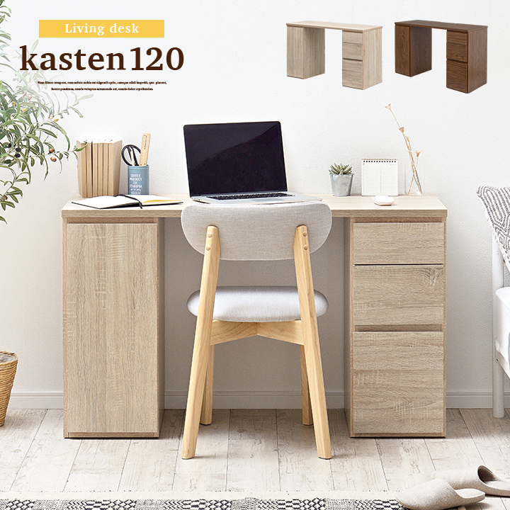 リビングデスク 学習机 学習デスク 勉強机 勉強デスク パソコンデスク ユニットデスク コンパクト 木製 おしゃれ シンプル kasuten(カステン) 幅120cm 2色対応