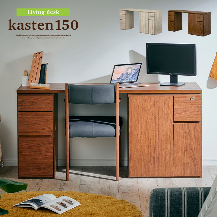 プリンター収納付 ワイド リビングデスク 学習机 学習デスク パソコンデスク ユニットデスク シンプル おしゃれ 収納 kasuten(カステン) 幅150cm 2色対応