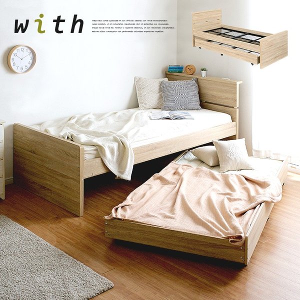 二段ベッド 大人用 子供 収納式 スライドタイプ コンセント付 宮付き 親子ベッド 2段ベッド スライドベッド 収納ベッド コンパクト with(ウィズ) 2色対応
