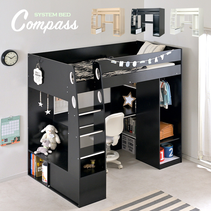 システムベッド 子供 大人用 ロフトタイプ ロフトベッド 机付き 机 システムベッドデスク システムデスク おしゃれ ハイタイプ Compass(コンパス) 3色対応