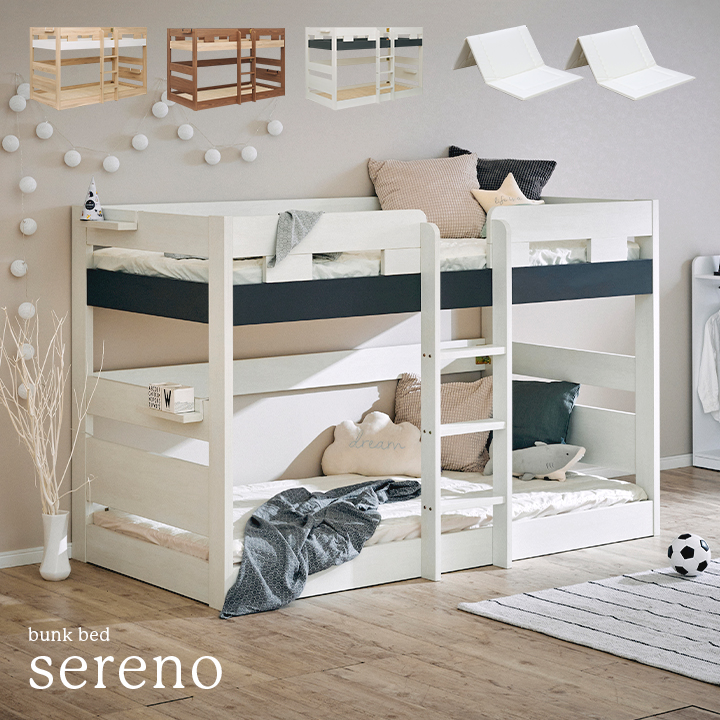 二段ベッド 大人用 子供 マットレス付き シンプル 2段ベッド ロータイプ 木製 おしゃれ フック棚付き sereno(セレーノ) 3色対応
