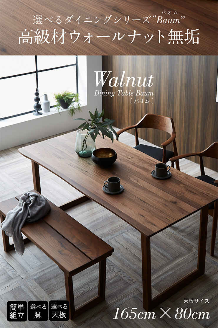 幅165cm ダイニングテーブル ダイニング 食卓テーブル ミーティングテーブル 木製 おしゃれ 4人 165cm幅 テーブル単品 Baum(バオム) ウォールナット 全6タイプ