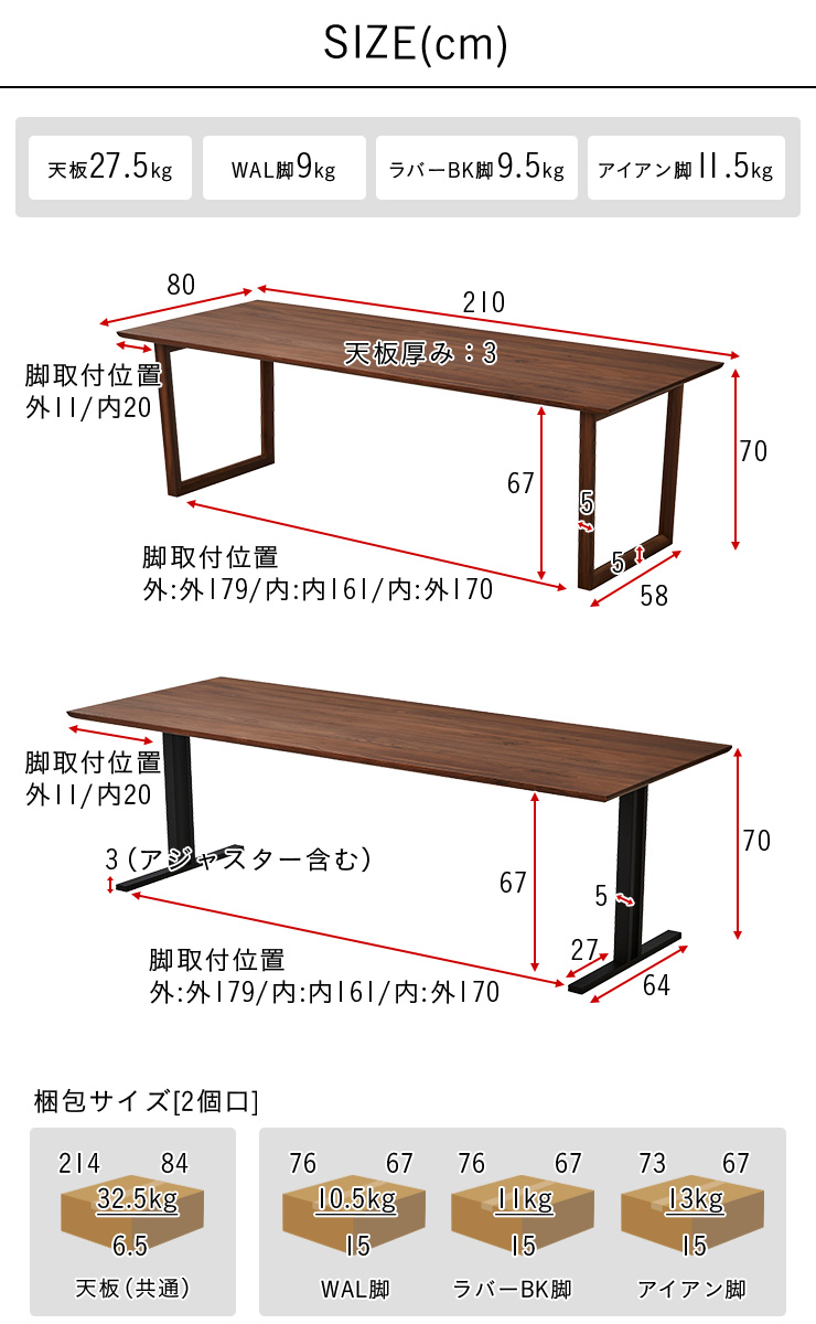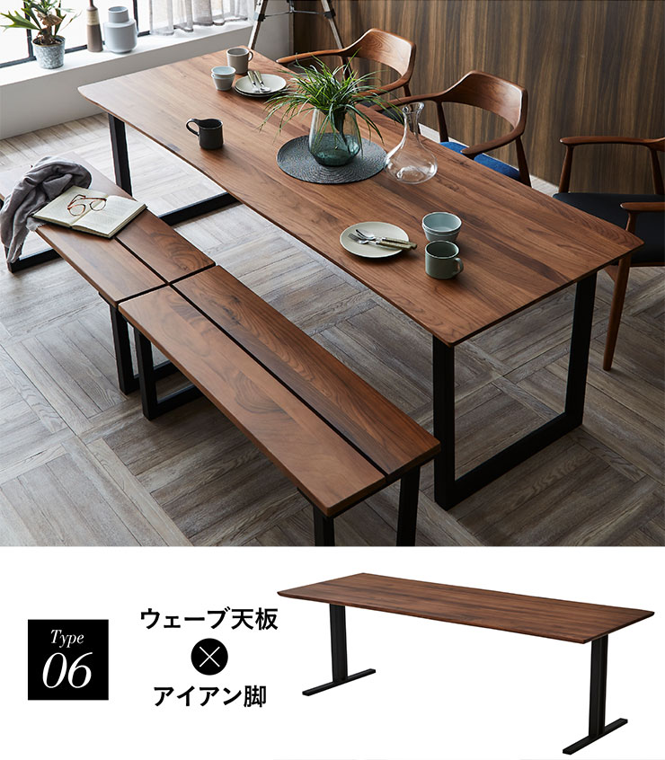 幅210cm ダイニングテーブル ダイニング 食卓テーブル ミーティングテーブル 木製 おしゃれ 6人 210cm幅 テーブル単品 Baum(バオム) ウォールナット 全6タイプ