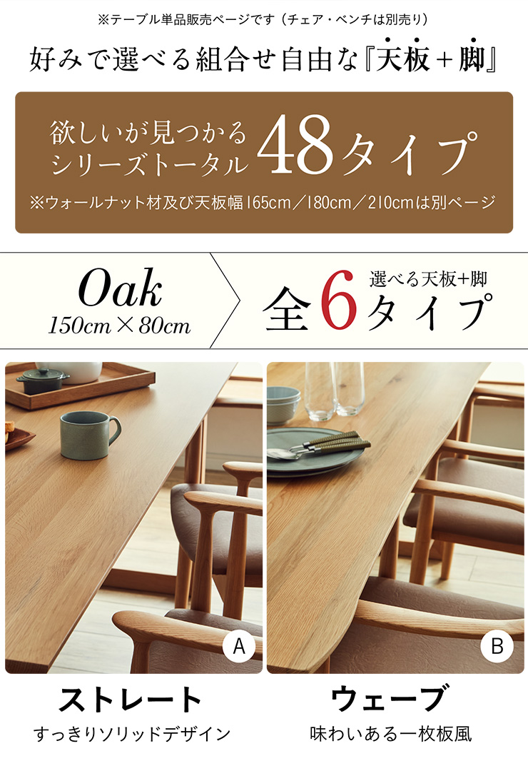ウェーブ天板/オーク脚