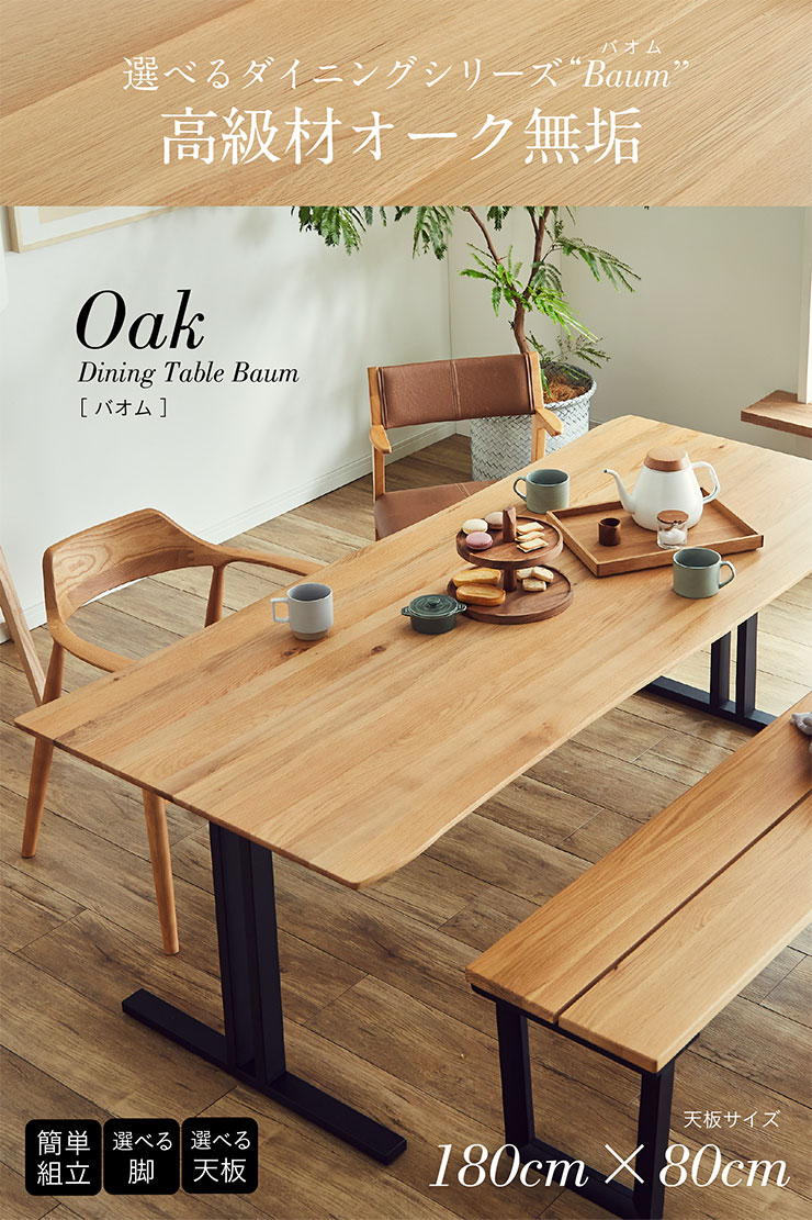 幅180cm ダイニングテーブル ダイニング 食卓テーブル ミーティングテーブル 木製 おしゃれ 6人 180cm幅 テーブル単品 Baum(バオム) オーク 全6タイプ