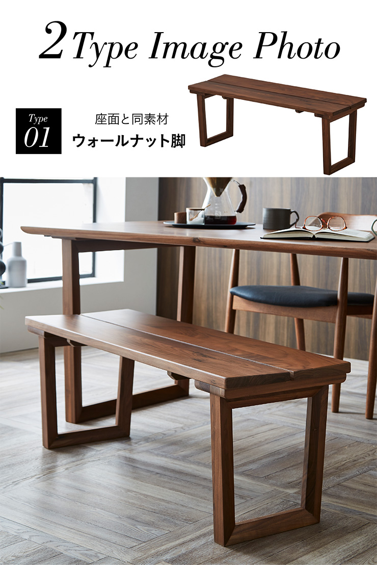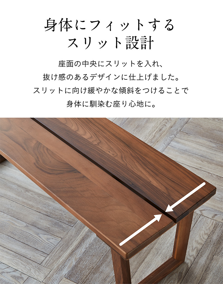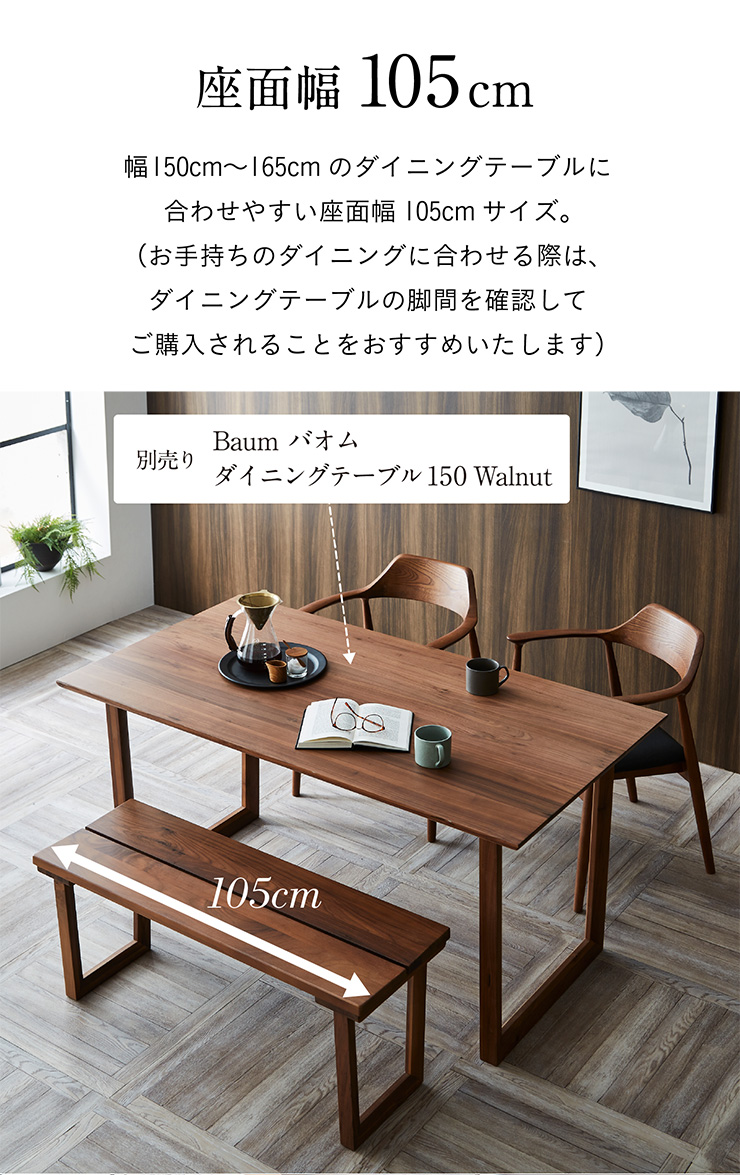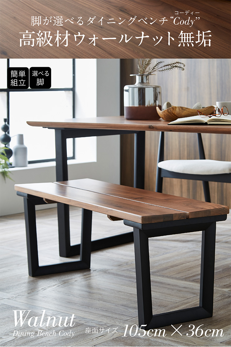 ダイニングベンチ 105cm幅 ウォールナット無垢材 椅子 ダイニング ダイニングチェア 木製 おしゃれ モダン Cody(コーディー) 幅105cm ウォールナット 全2タイプ