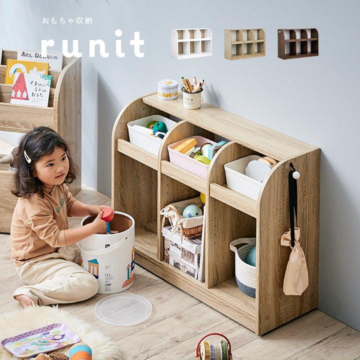 キャスター付き おもちゃ収納 おもちゃ収納棚 おもちゃ棚 絵本ラック 絵本棚 ブックラック 本棚 おもちゃ箱 玩具箱 収納 木製 おしゃれ runit(ルニト) 3色対応
