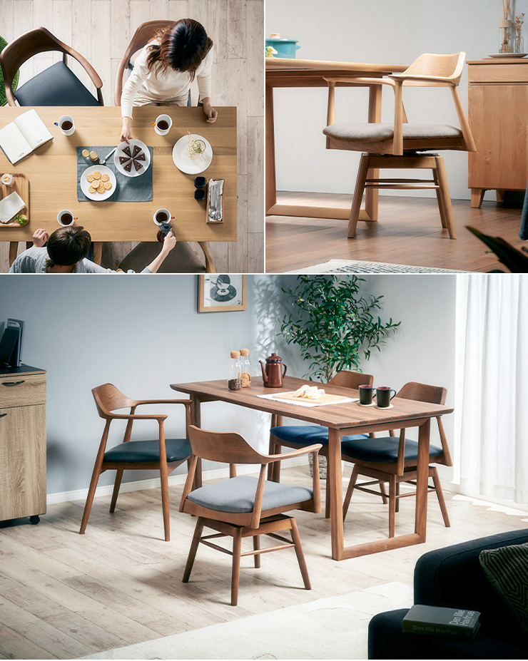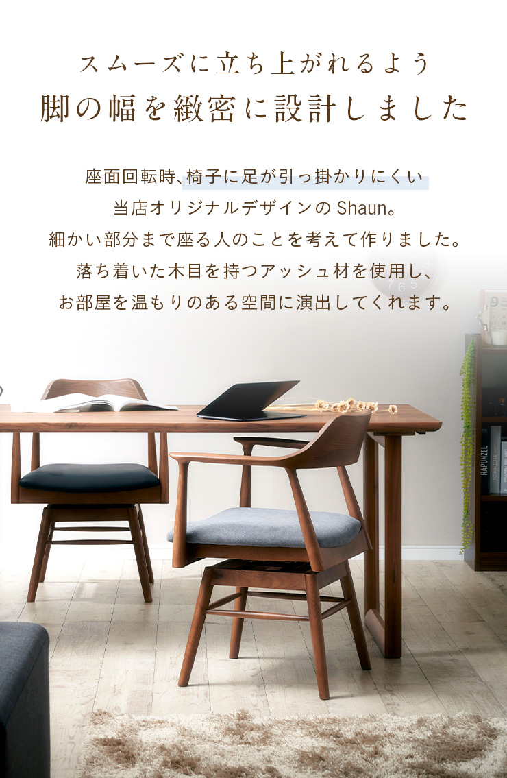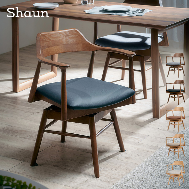 簡単組立 ダイニングチェアー ダイニングチェア 回転椅子 回転チェア 食卓椅子 いす 布地 PVCレザー おしゃれ 木製 肘付きチェア Shaun(ショーン) 1脚 4色対応