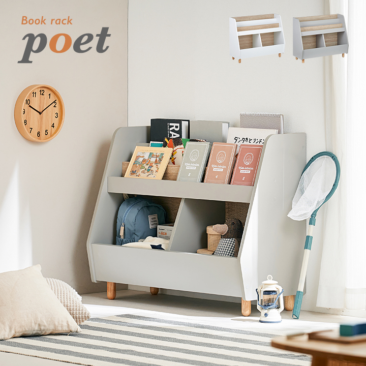 絵本ラック 絵本棚 幅82cm 本棚 ブックラック ブックシェルフ おもちゃ収納 おもちゃ箱 おもちゃ入れ おもちゃ棚 収納 ラック おしゃれ poet(ポエト) 2色対応