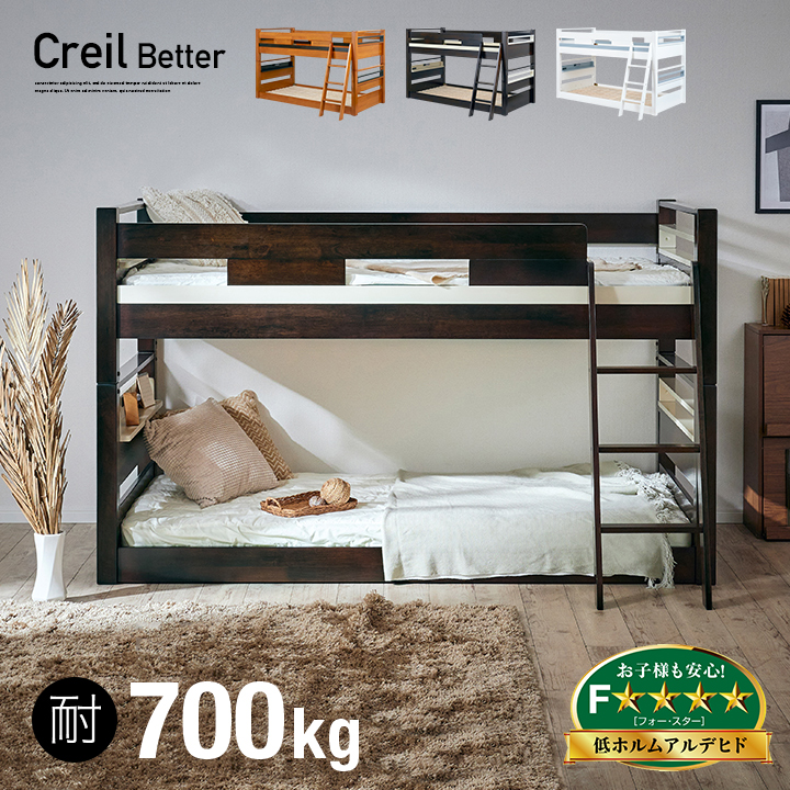 二段ベッド 大人用 子供 2段ベッド 子供用ベッド 大人 頑丈 ロータイプ 分割可能 シングル 耐震 モダン おしゃれ 宮付き Creil Better(クレイユ ベター) 3色対応