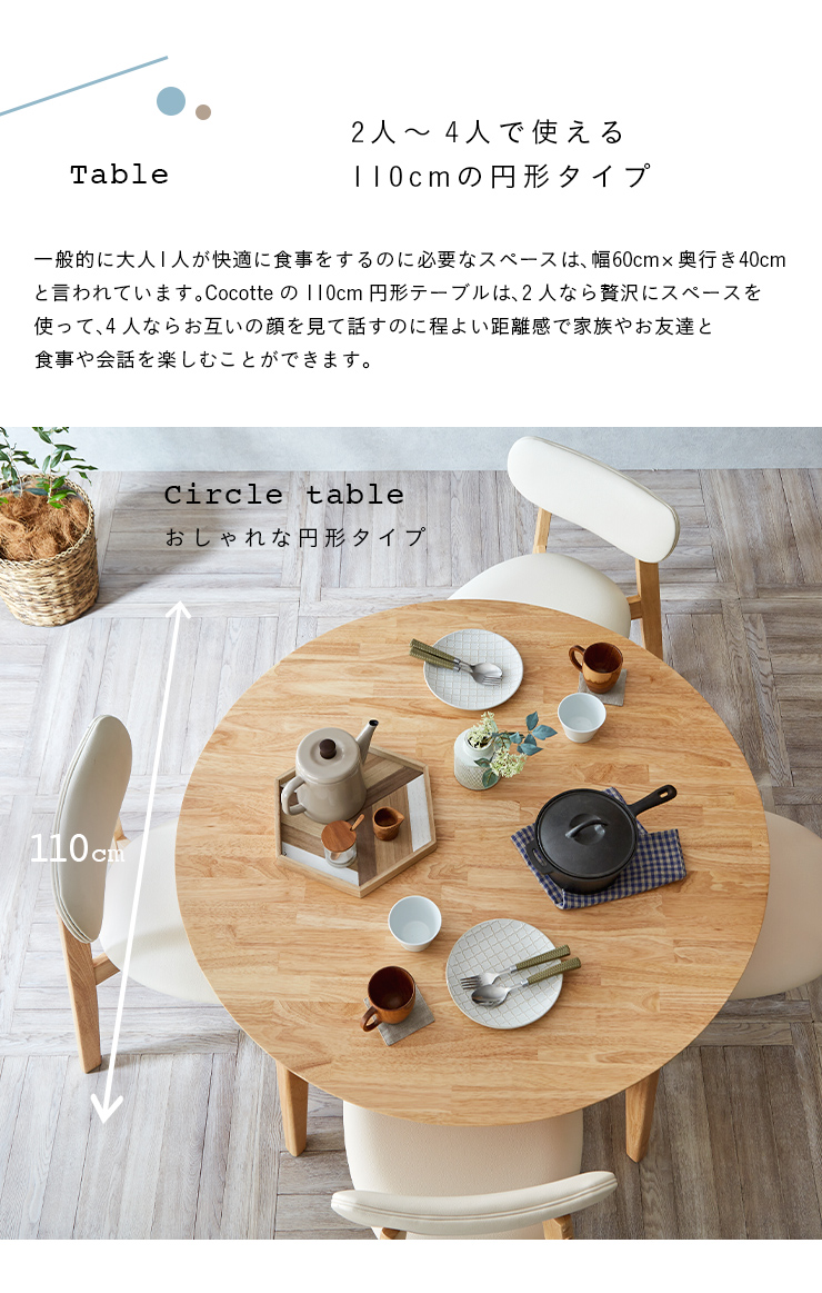 円形ダイニングテーブル 幅110cm 単品 Cocotte3(ココット3) ダイニング テーブル 4人掛け 食卓テーブル ラウンドテーブル 円卓 作業台 シンプル 木製 おしゃれ