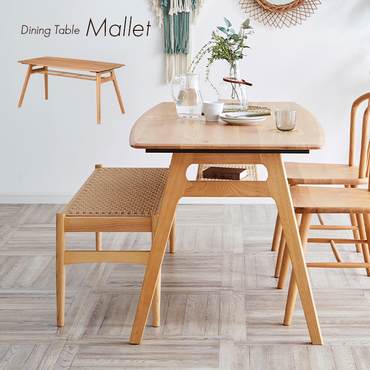 ダイニングテーブル 幅150cm Mallet(マレット) 単品 テーブル ダイニング リビング 4人掛け 収納付き 食卓テーブル 食卓用 作業台 オーク 無垢材 木製 おしゃれ