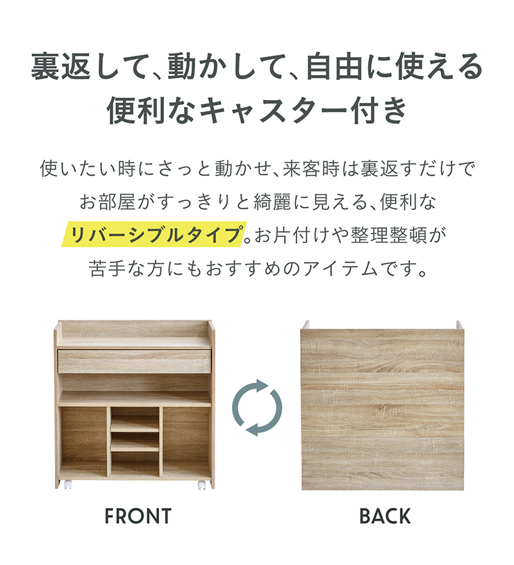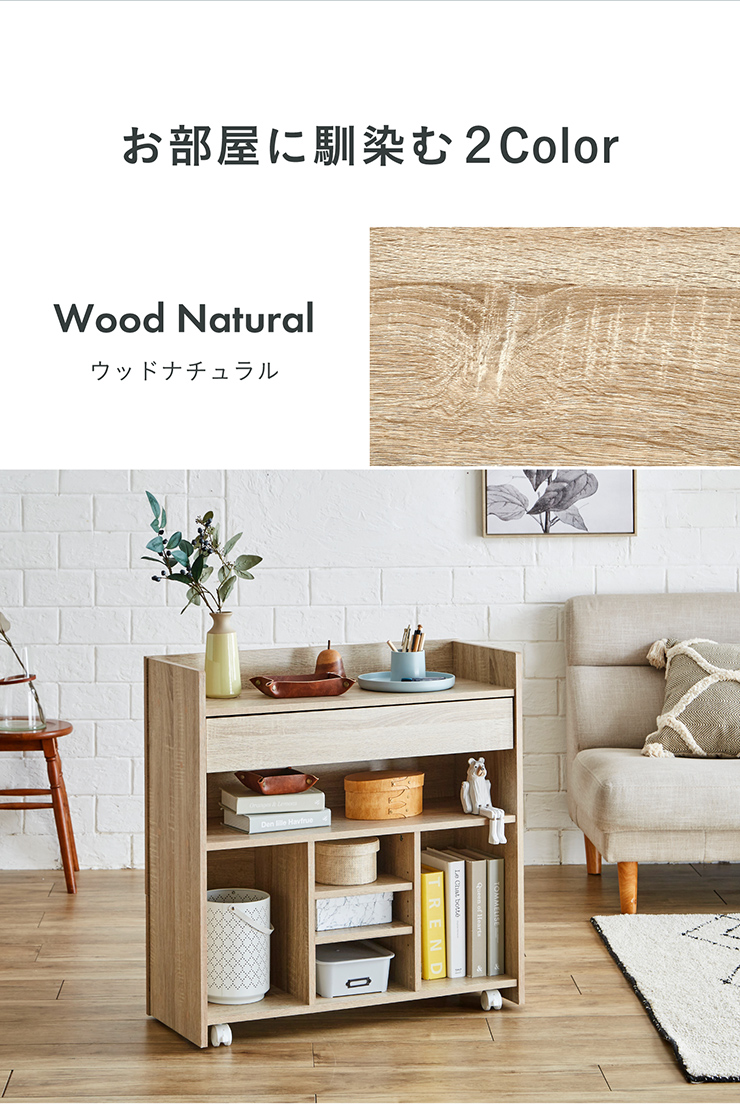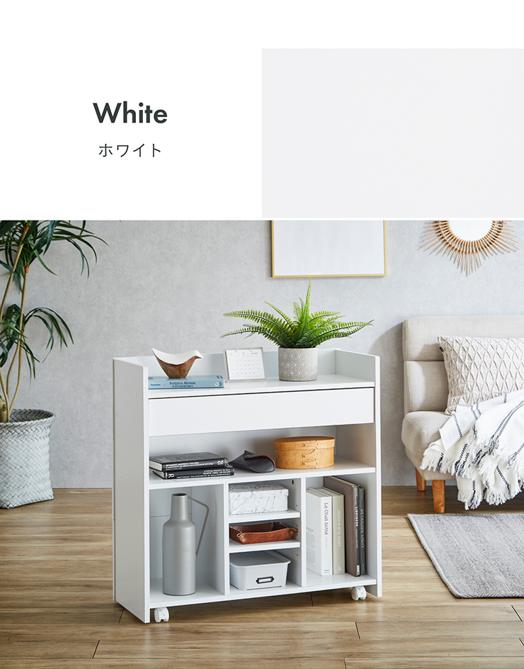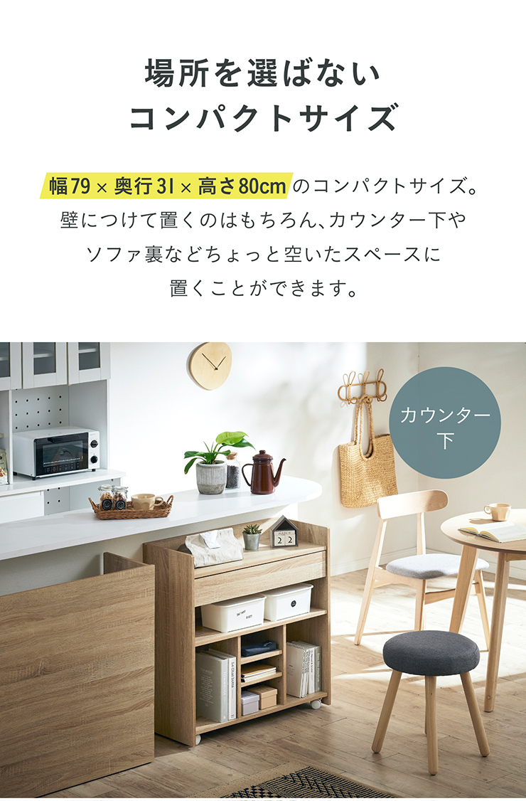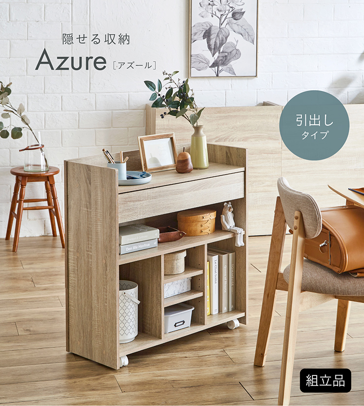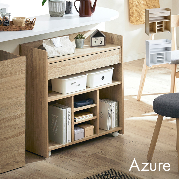 キャスター付き 収納 ラック 棚 キャビネット シェルフ 小物入れ 小物収納 おしゃれ 子供部屋 リビング 幅79cm 引き出し付き 隠す収納 Azure(アズール) 2色対応