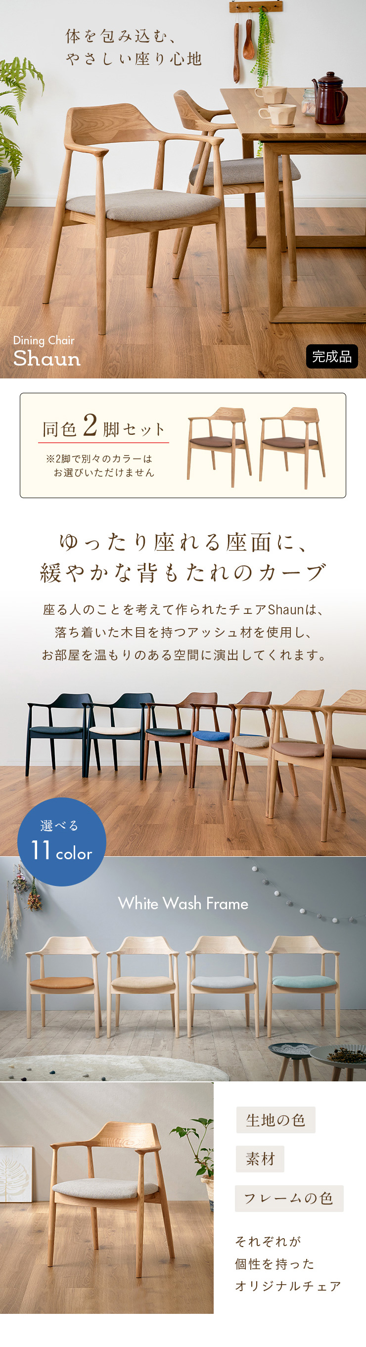 完成品 ダイニングチェアー ダイニングチェア デスクチェア 食卓椅子 いす 布地 PVCレザー おしゃれ 木製 肘付きチェア Shaun(ショーン) 2脚セット 11色対応