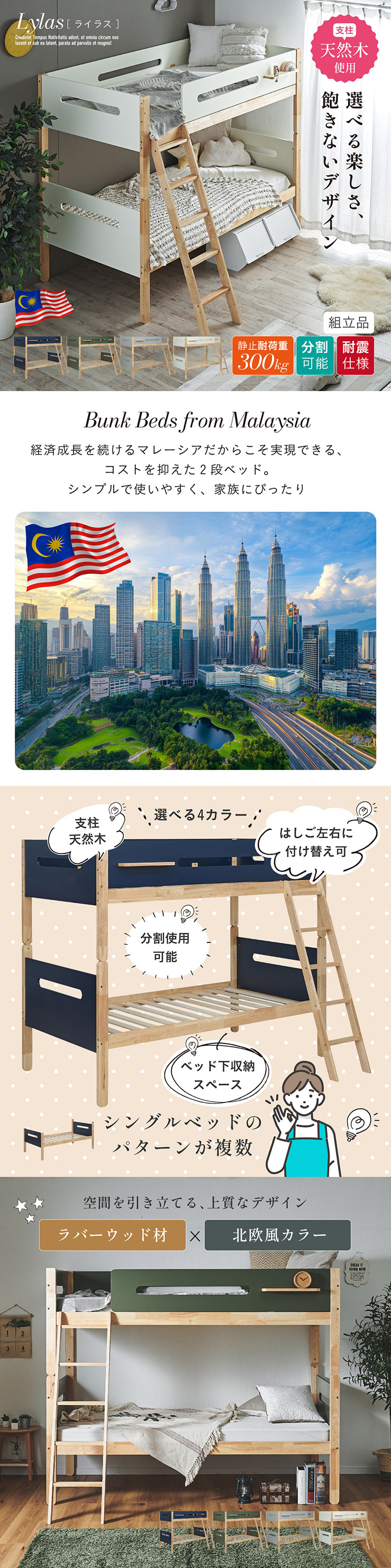 二段ベッド 大人用 子供 子供用 木製 おしゃれ 収納付き 分割可能 高さ調整 シングル はしご付き コンパクト シンプル 安全設計 北欧風 子供部屋